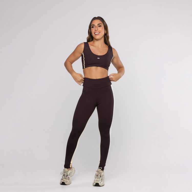 O detalhe lateral em cor contrastante adiciona um toque moderno ao design, trazendo mais personalidade e elegância à peça. Perfeita para composições fitness ou looks casuais com estilo e praticidade.