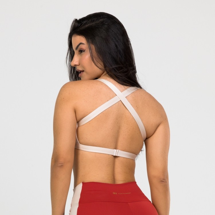 O Top Creative possui uma modelagem diferenciada, com sua frente única, combina moda casual (pode ser usado fora da academia) e moda fitness. Feito em poliamida com leve brilho, este top adiciona um toque de luxo à sua roupa de treino. O decote nas costas não apenas proporciona uma aparência mais sexy, mas também oferece ventilação e liberdade de movimento. Seja criativa em seus treinos, destacando-se com este top que une o brilho da poliamida à inovação do design para uma experiência fitness única.