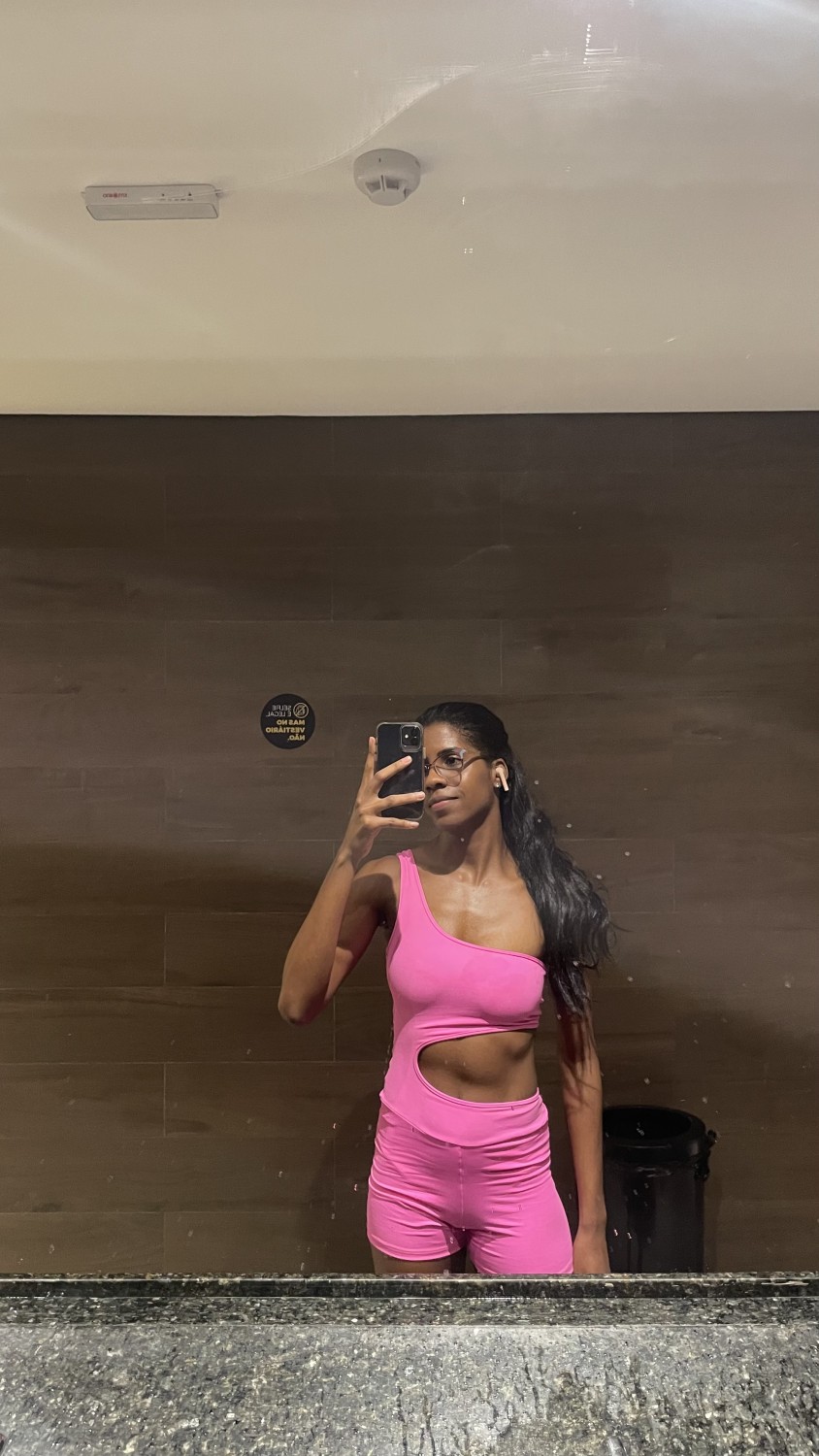 A modelo veste tamanho P.